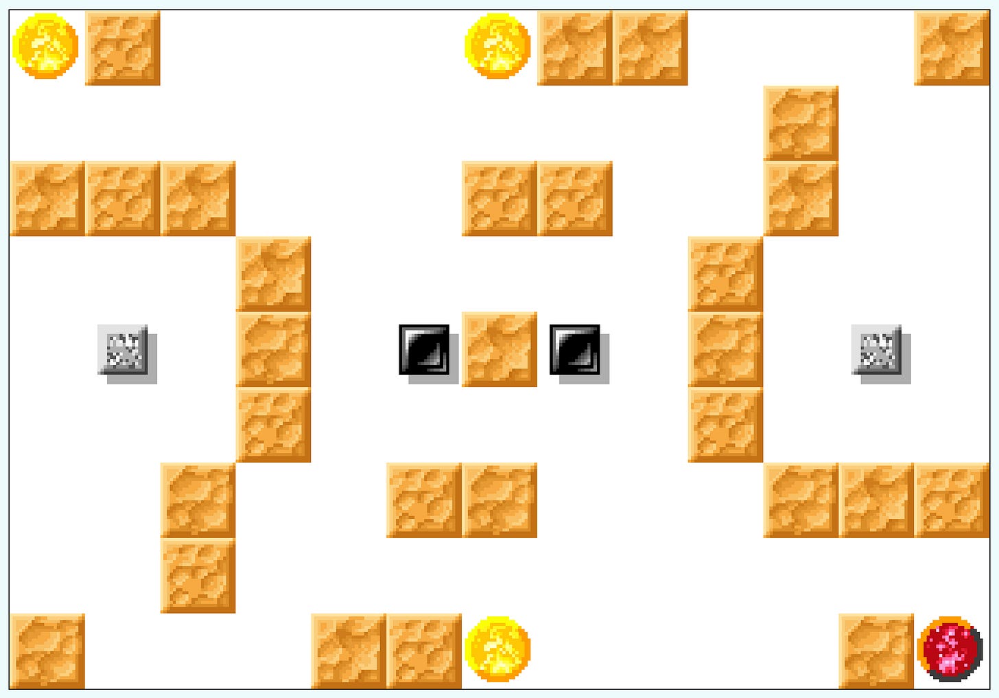 One of Heaven & Earth's central themes was embodiment, or what it's like to exist in a physical space. In the case of Identity Maze we played with that concept by giving you multiple bodies. As with all of the Heaven & Earth puzzles, it's broken down into four levels, with each being a different variation on the main puzzle concept. In each level you have multiple block "bodies", but how they are connected changes: